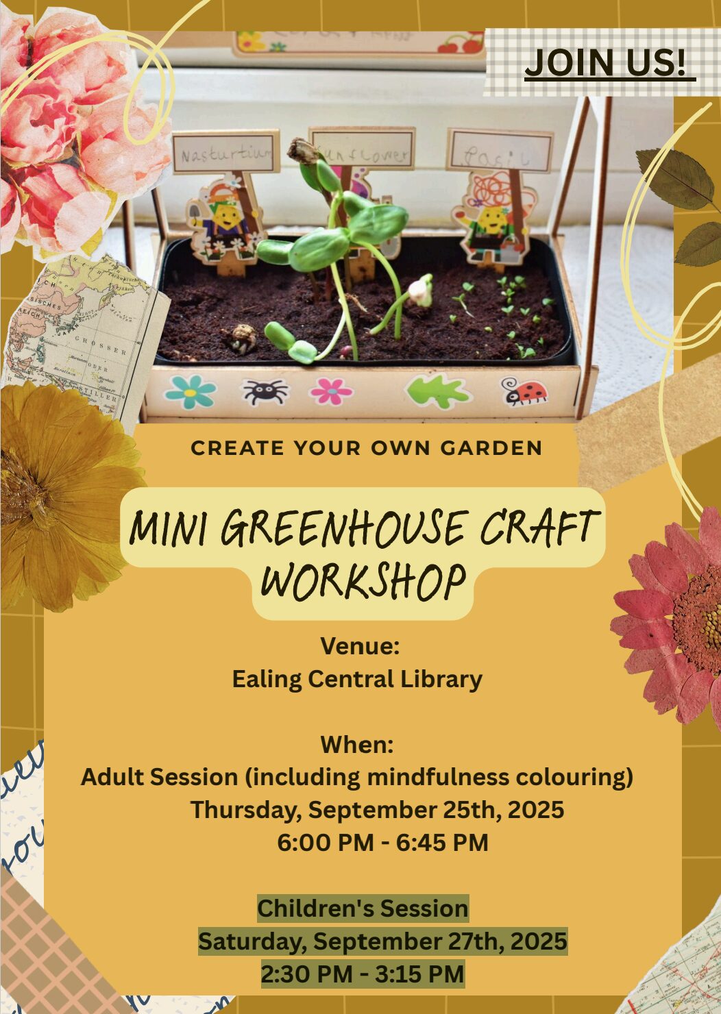 Join in to this free create your own mini-greenhouse for Ealing Climate Week activities.  You will make your mini-greenhouse, you do not need to bring anything for this event.