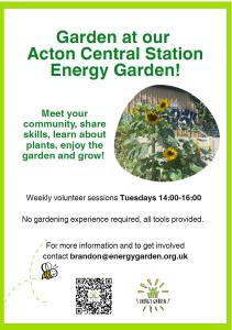 Link to register: https://www.energygarden.org.uk/new-volunteers – select Acton Central when prompted!