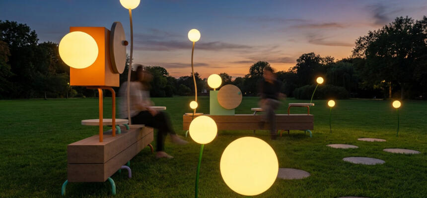 Collective Light is a pop-up installation led by collective @anyyarchitects and @elizabethwan and commissioned by Ealing Council. At its centre is an interactive glowing bench that lights up at night through energy generated by people’s touch and movement—transforming everyday interactions into small acts that help make the park feel safer and more welcoming- a public living room.